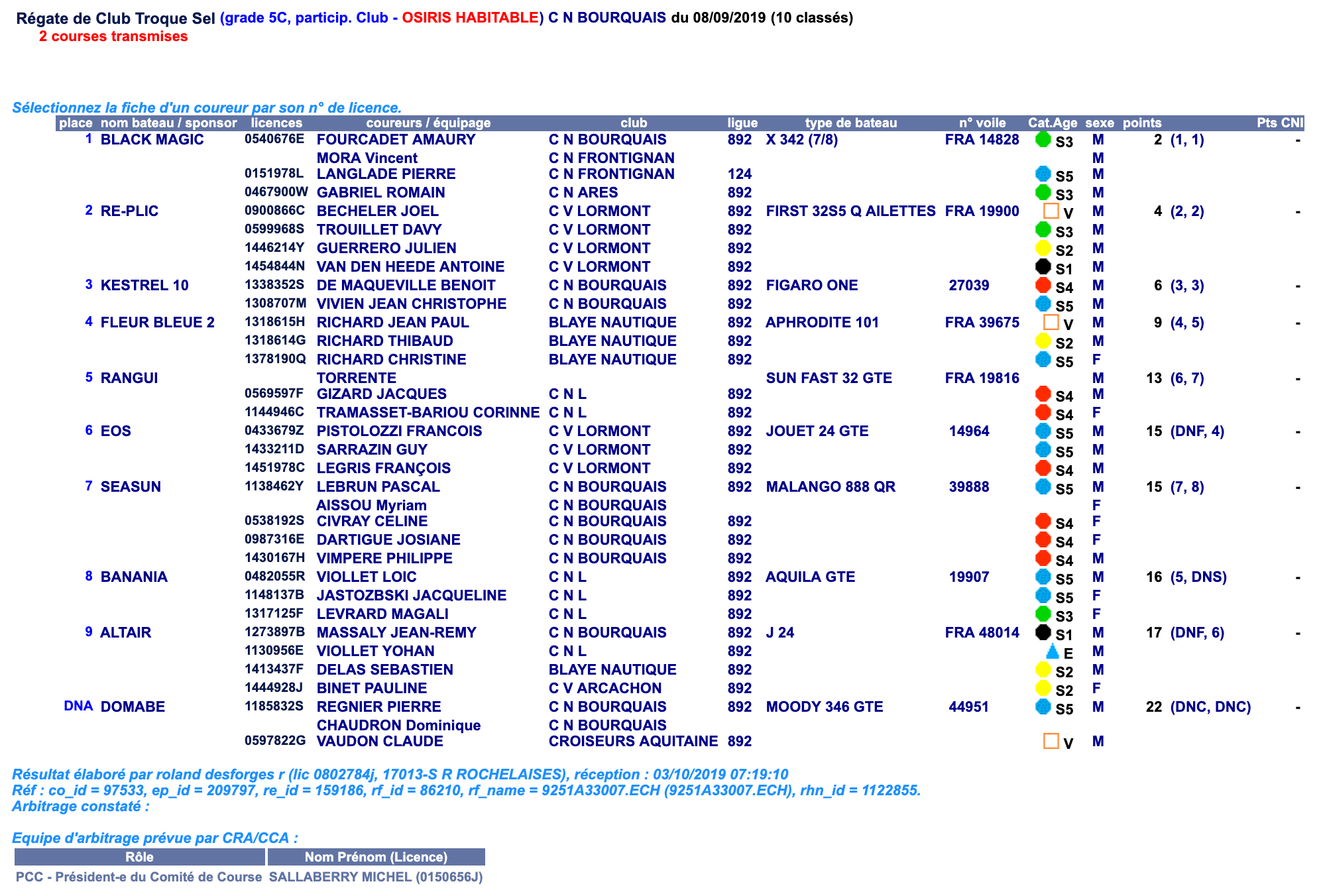 Les résultats de la Troque Sel 2019